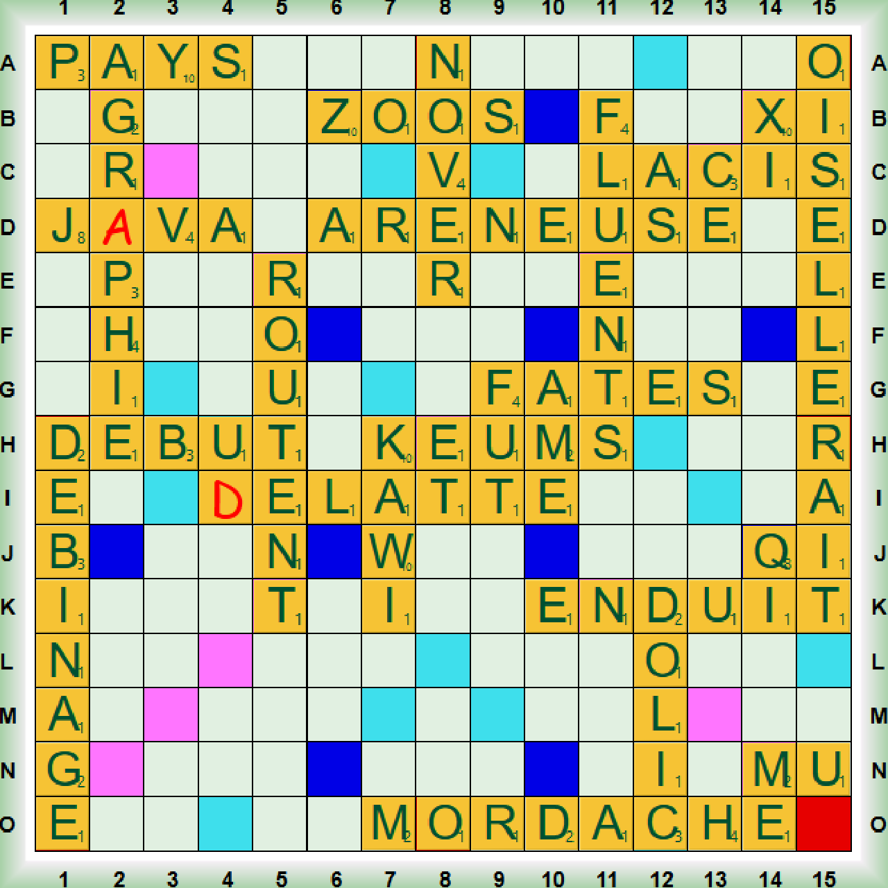 | 10 | O+UTUINR | GR(A)PHIE | | 2B | 40 | (ÉPHORIe, 2H, 38) | 10 | LEBEGUE Josée | 716 | 73,44 | | | |