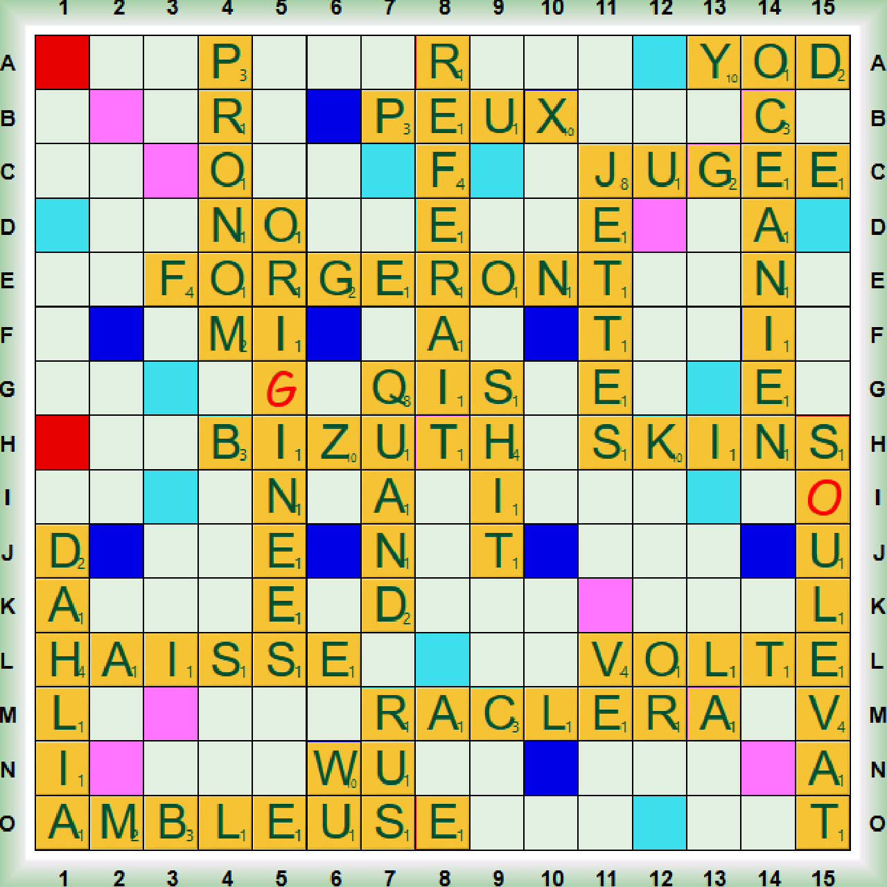 | 20 | JUGÉE | 26 | 26 | 26 | 26 | 26 | 26 | 26 | 17 | 12 | 18 | 26 | 26 | 17 | 26 | 17 | 26 | 26 | 26 | 26 | 26 | 8 | (JUGE, C11, 24) |