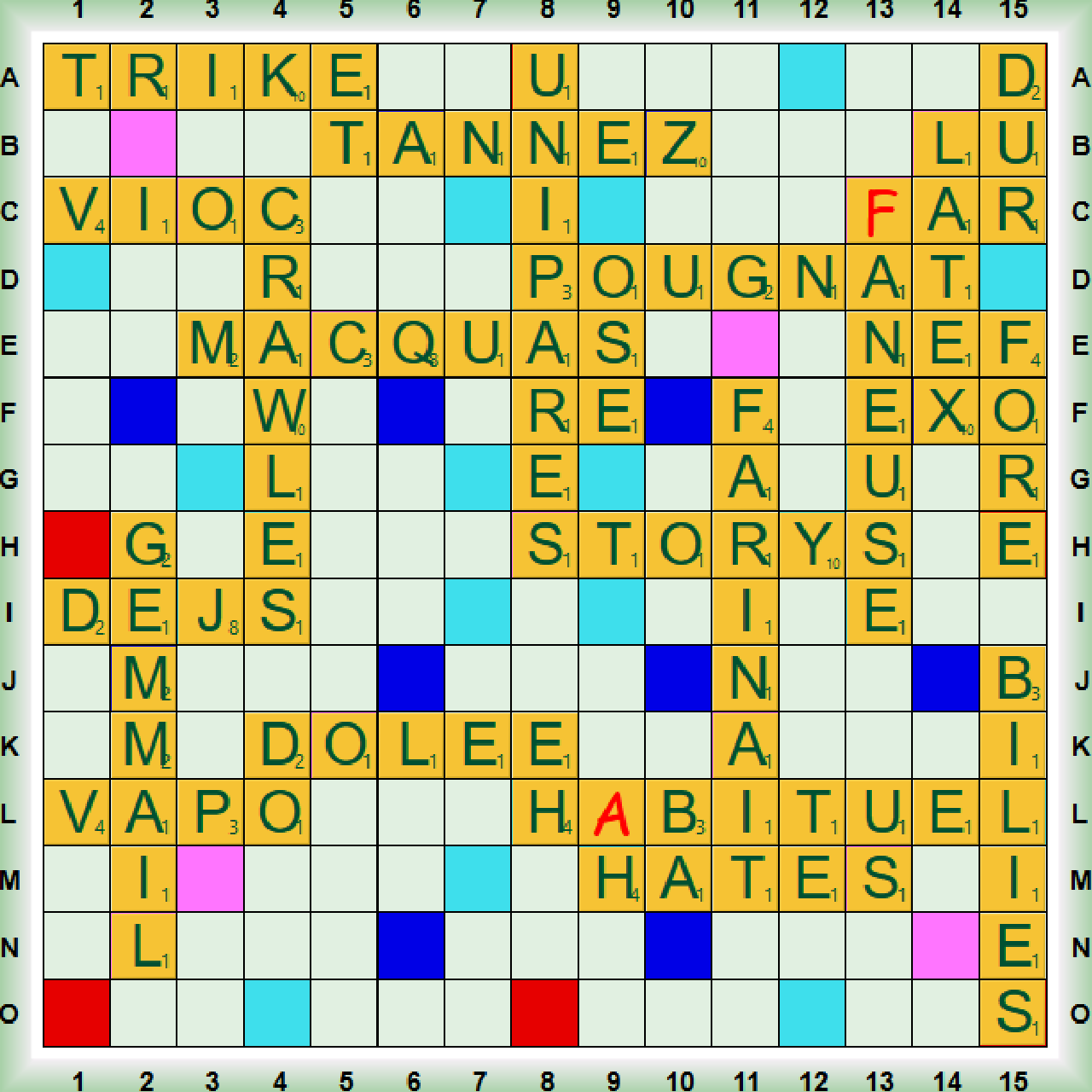 | 12 | FORE | 39 | 39 | 39 | 39 | 39 | 39 | 39 | 39 | 39 | 36 | 36 | 39 | 34 | 23 | 23 | 34 | 24 | 12 | (FORME, 15A, 36) |
