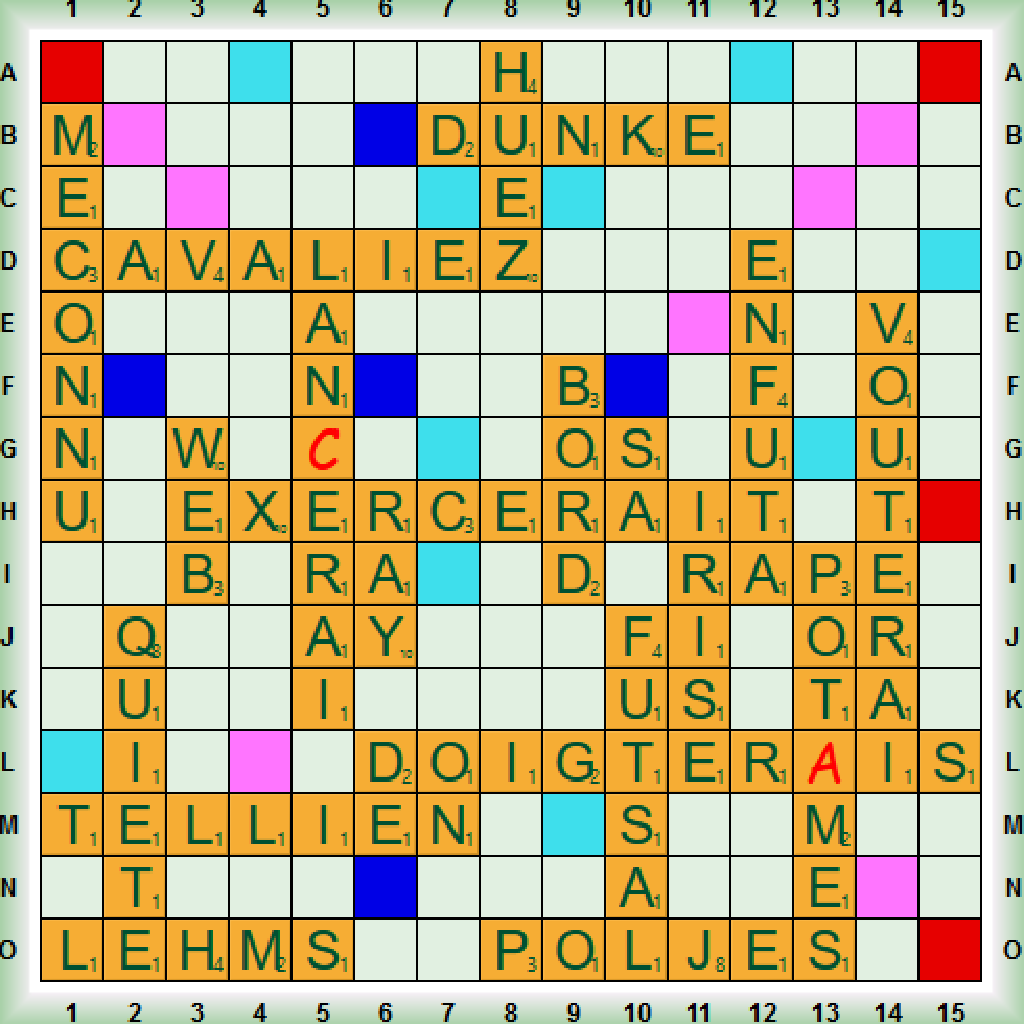 | 1 | EXERCE | 54 | 54 | 54 | 54 | 54 | 54 | 54 | 54 | 26 | 54 | 26 | 54 | 54 | 54 | 54 | 54 | 54 | | 26 | (EXÈCRE, H 3, 54) |
