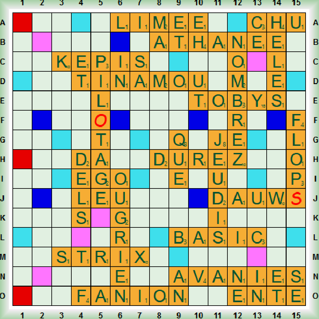| 15 | -IARSXAT | FANION | f | O 4 | 39 | (FANON, O 4, 36) | | | | | | | |