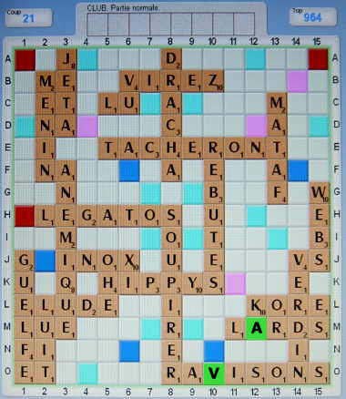 24pts, asines 25 et synase 26, là pas trop difficile à trouver. En scrabble, beaucoup de conjugaisons, quoi
